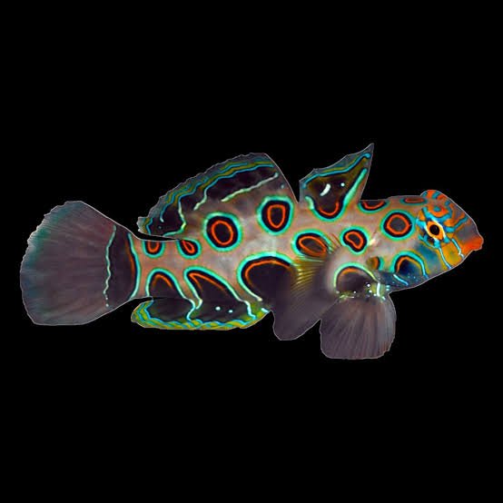 Spotted Mandarin Tamanho mínimo aquário : 120 LITROS Níveis de cuidado : difícil Temperamento: pacifico Compatível em aquários de corais : sim Condições da Água: 22 a 26 º, dKH 8-12, pH 8,1-8,4, sg 1,020-1,025 Tamanho máximo :10 cm Cores : preto, azul, verde, laranja Dieta: carnívoro Origem: Indo-Pacífico Família: Callionymidae