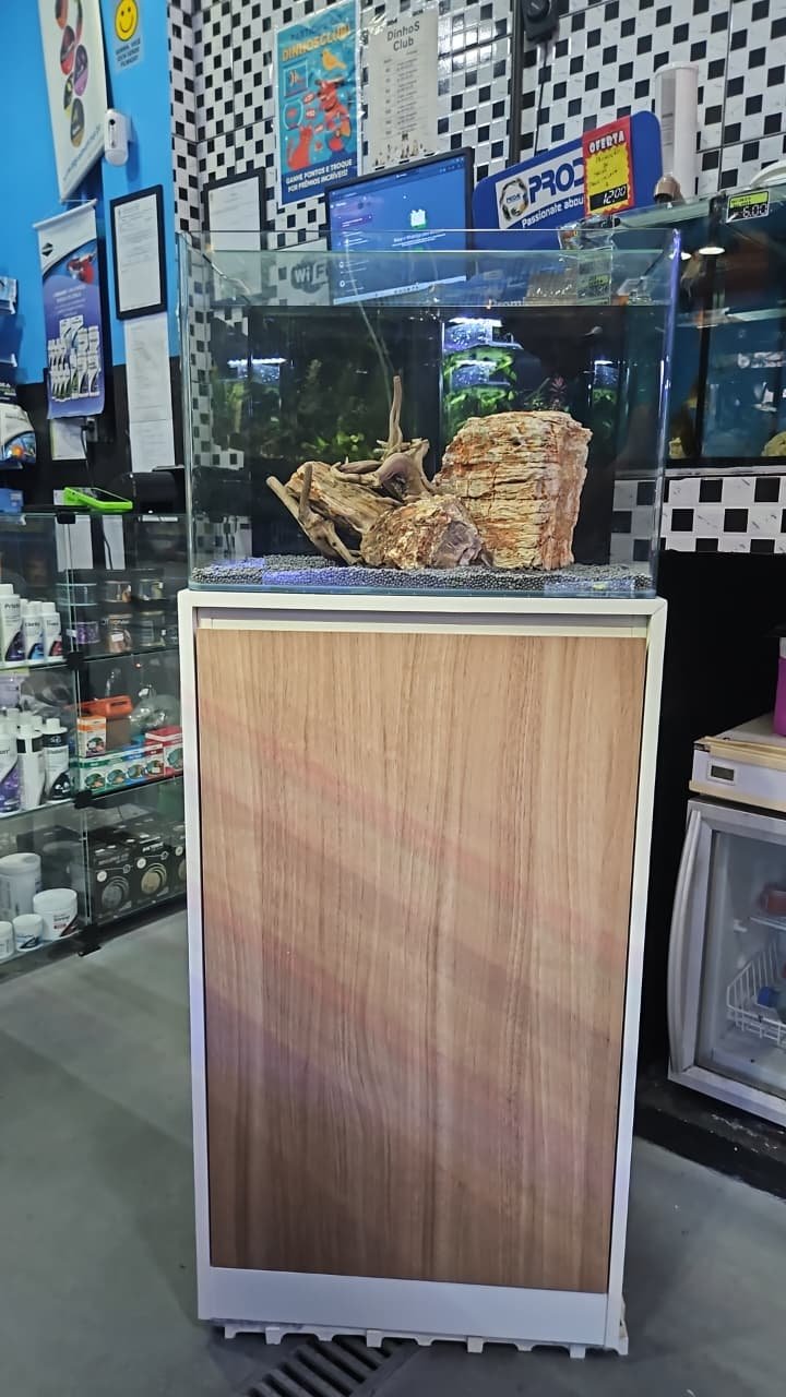 Movel de Madeira Branco Porta Cor madeira aquario Curvo 77L
