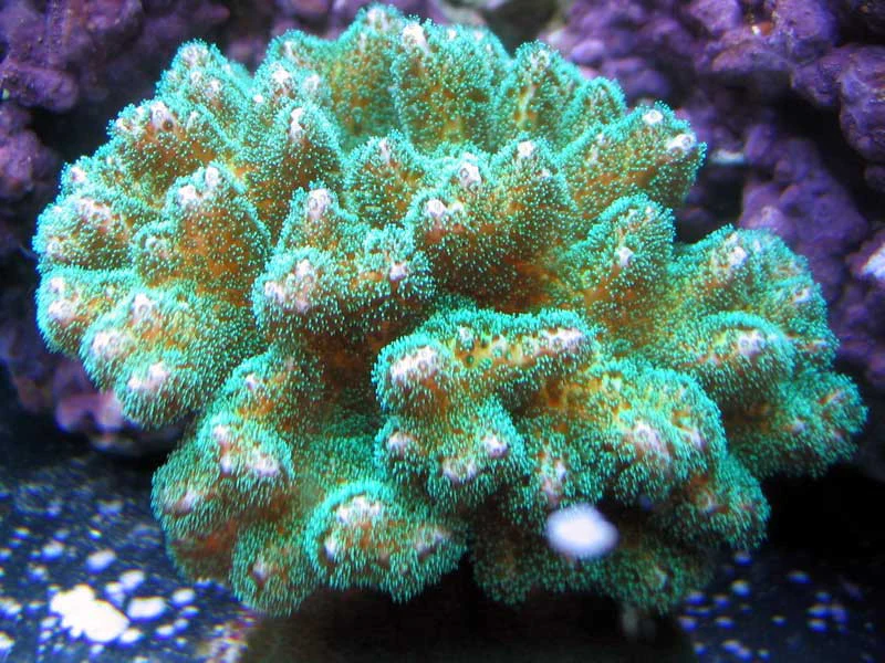 Cuidados com a colocação do coral ACROPORA POCILOPHORA GREEN Acropora: Monte usando cola de gel de coral, ou massa, em uma rocha ou borda exposta no aquário, onde receberá fluxo direto e luz. Este coral cresce para fora como uma mesa. Dê-lhe espaço para “mesar fora” e ele se tornará uma bela peça de exibição. Requisitos de iluminação e fluxo: Requer fluxo de água moderado a alto e iluminação brilhante para manter sua cor. T5s, halogenetos metálicos ou LEDs podem crescer acropora quando os níveis de PAR adequados são fornecidos. Recomendamos um espectro de cores de 14-20K para melhor coloração. Nível de cuidado: Fácil! Requisitos de iluminação: Moderado a alto (PAR 300-450) Caudal de Água: Alta Agressividade: Pacífico Alcance: Indo-Pacífico Condições da Água: 75-80° F; sg 1,024-1,026 (1,025 é ideal); pH 8,1-8,4 Ca 420-440 ppm, Alk 8-9,5 dKH, Mg 1260-1350, Nitratos <10 ppm, Fosfatos, <0,10 ppm Química da Água: . Tamanho: 0,5″ – 1,25″