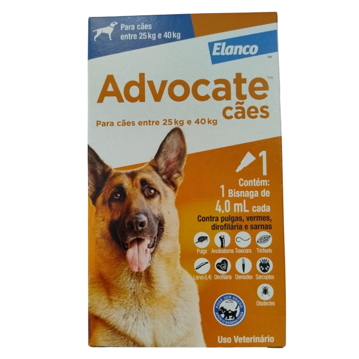 Advocate Cães 4.0 ml é um antiparasitário de uso tópico indicado para cães de porte gigante, pesando acima de 25 kg. Sua fórmula inovadora combate pulgas, sarna, vermes intestinais e dirofilariose (verme do coração), oferecendo uma proteção eficaz e contínua. Seguro, prático e de fácil aplicação, é ideal para manter a saúde do seu cão protegida.