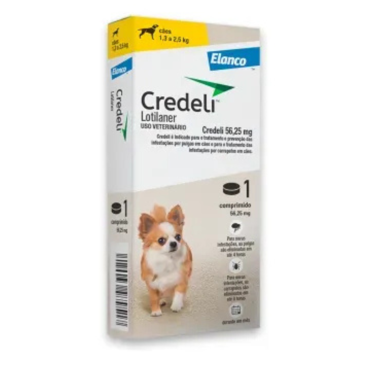 Comercializado em 5 concentrações diferentes, sendo cada uma específica para um peso corporal, o Antipulgas Credeli 56,25 mg é especificamente para cães de 1,3kg a 2,5kg.