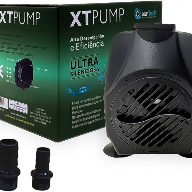 A Bomba Submersa XT Ocean Tech 3000 L/H foi projetada para ser utilizada em Aquários (Água Doce ou Salgada), Lagos pequenos, Sump (recalque), Bebedouros, Climatizadores, Fontes, Aquaterrários, Hidroponia e muito mais. Silenciosa e Eficaz, esta moto bomba produz uma movimentação de água de 3000 litros/hora, com Baixo Consumo de energia elétrica (apenas 55 Watts). Possui 4 ventosas anti-ruído para uma excelente fixação, além de regulador de vazão da água e EIXO DO IMPELLER EM CERÂMICA. Como em todas as bombas, os componentes elétricos são totalmente imersos em resina epóxi, tornando-as seguras contra choque elétrico mesmo trabalhando continuamente submersas. CARACTERÍSTICAS TÉCNICAS: Dimensões (comprimento x largura x altura): 11 x 7 x 11 cm Conexões de Saída: 14 e 17mm Vazão Máxima: 3000 litros/hora. – Altura e distância diminuem a vazão da bomba. Verifique o gráfico de vazão x altura disponível nas imagens do anúncio. Cabo normatizado Inmetro: 1,14 metros. Potência: 55 Watts. Consumo: 0,055 kWh. Para saber o consumo mensal, considerando que ela fique ligada 24h por dia, basta multiplicar 0,055 x 720 x valor do kWh da sua região. Voltagem: Selecionar no anúncio. Caso não tenha a voltagem desejada, é porque estamos sem estoque no momento. Coluna máxima para construção de fontes (coluna de água): 200 cm / 2 m Ultra silenciosa, econômica e durável. COMO DIMENSIONAR A BOMBA IDEAL PARA O SEU SISTEMA: – AQUÁRIO: Recomenda-se uma vazão de 10 à 15 vezes o volume (litros) do seu aquário. Exemplo: Se o seu aquário tem 200 litros, recomenda-se uma bomba de 2000 à 3000 litros/hora. – LAGO: Recomenda-se uma vazão mínima de 4 vezes o volume (litros) do seu lago. Exemplo: Se o seu lago tem 1000 litros, recomenda-se uma bomba de no mínimo 4000 litros/hora. *** Quanto maior a vazão, melhor a filtragem, circulação, oxigenação da água e consequentemente melhor a qualidade da água.