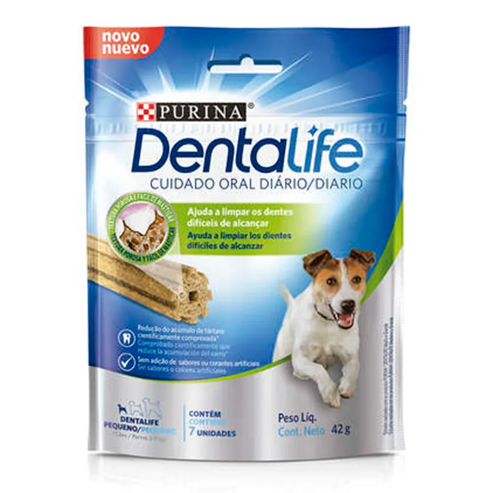 Purina Dentalife é indicado para cães adultos de Pequeno Porte, preparado com ingredientes saudáveis e com o delicioso sabor de frango. Inovadora textura porosa e fácil de mastigar, possui 8 partes traçadas que auxiliam na limpeza dos dentes até a região da gengiva.