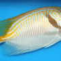 Double Bar Fox Face – Tamanho mínimo aquário : 300 litros Níveis de cuidado : moderado Temperamento: pacifico Compatível em aquários de corais : com cuidado Condições da Água: 22 a 26 º, dKH 8-12, pH 8,1-8,4, sg 1,020-1,025 Tamanho máximo : 18 cm Cores : preto, branco, amarelo Dieta: herbívoro Origem: Ásia Oriental Família: Siganidae