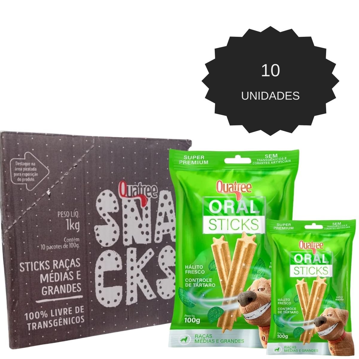 KIT 10UN QUATREE ORAL STICKS CAES SABOR MENTA 100G