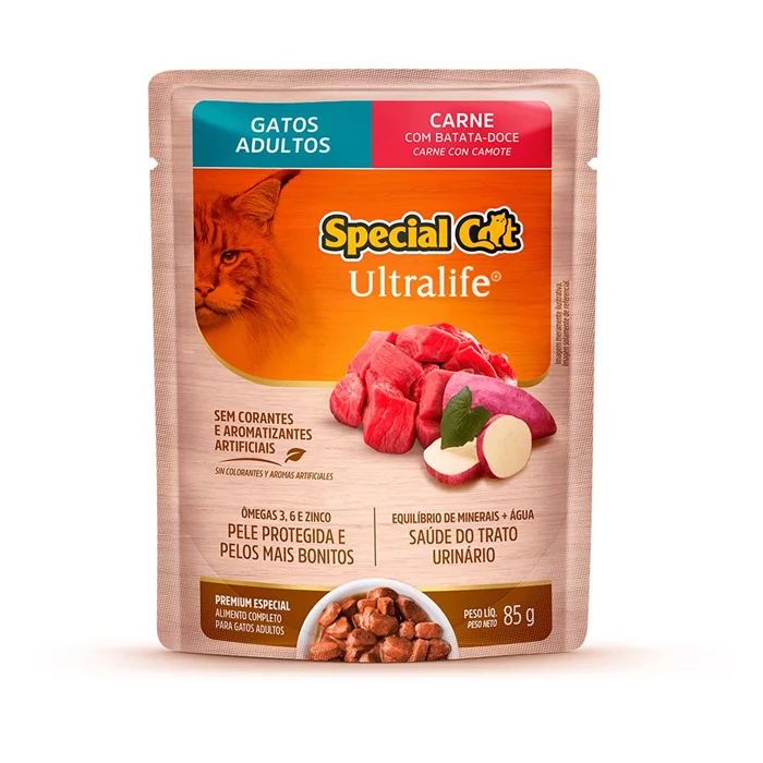 Sachê Special Cat Ultralife para Gatos Adultos Sabor Carne com Bata-Doce 85g