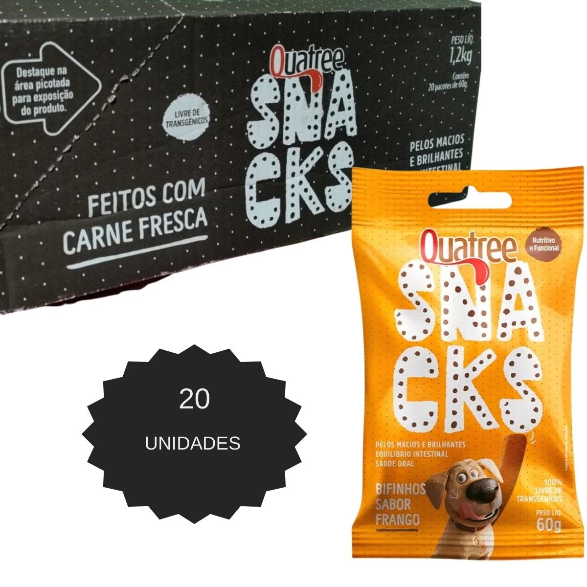 KIT 20UN QUATREE SNACKS BIFINHOS SABOR FRANGO 60G