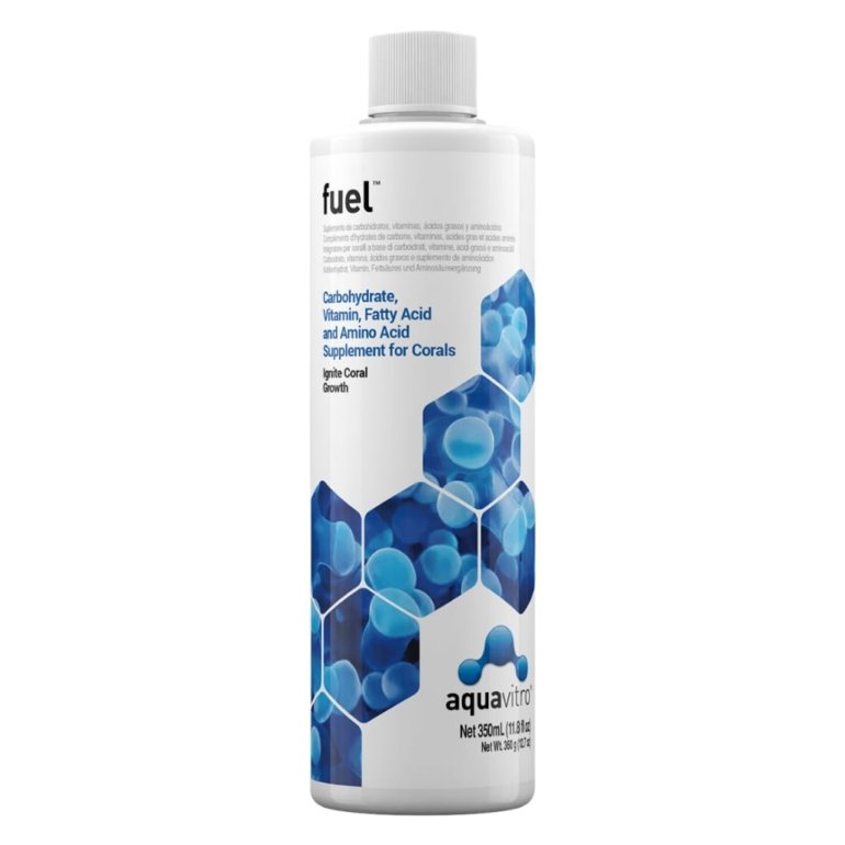 Aquavitro Fuel é um carboidrato integral, vitaminas, aminoácidos, ácidos graxos poliinsaturados, e suplemento de oligoelementos desenvolvido para atender as necessidades nutricionais comumente associados com corais.