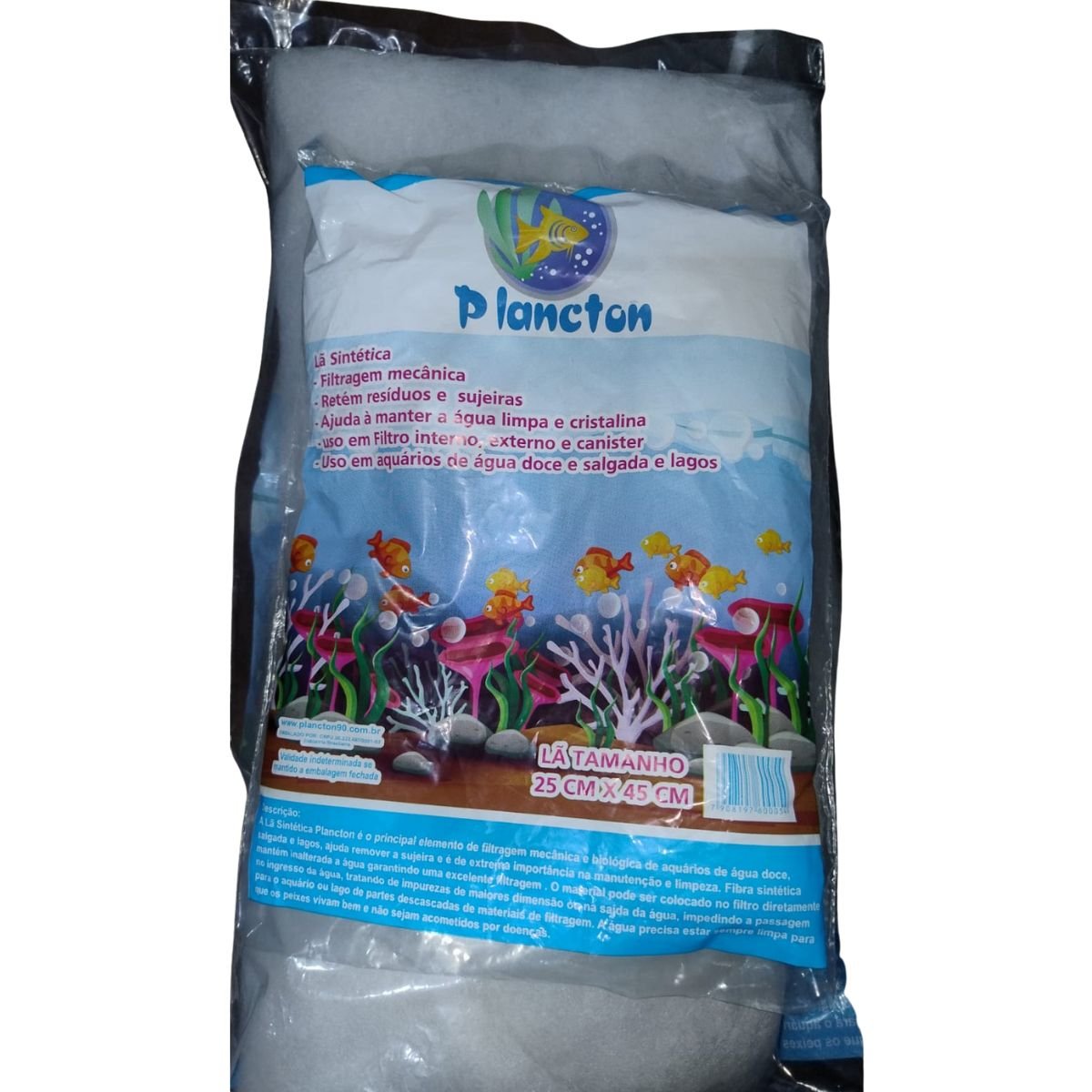 A Lã Sintética Plancton é o principal elemento de filtragem mecânica e biológica de aquários de água doce, salgada e lagos, ajuda remover a sujeira e é de extrema importância na manutenção e limpeza. Fibra sintética mantém inalterada a água garantindo uma excelente filtragem. O material pode ser colocado no filtro diretamente no ingresso da água, tratando de impurezas de maiores dimensão ou na saída da água, impedindo a passagem para o áquario ou lago de partes descascadas de materiais de filtragem. A água precisa estar sempre limpa para que os peixes vivam bem e não sejam acometidos por doenças.