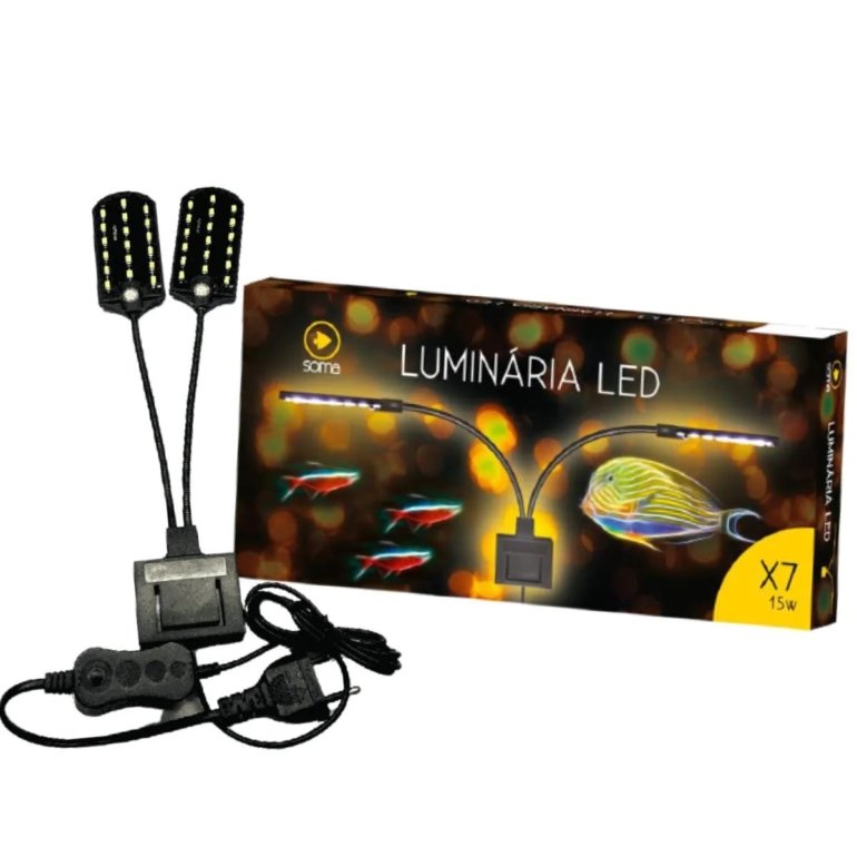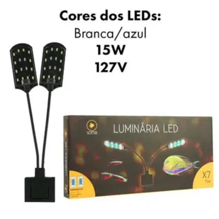 Luminária Dupla Flexível de LEDs para aquários Soma X7 – 15W Branca e vermelho