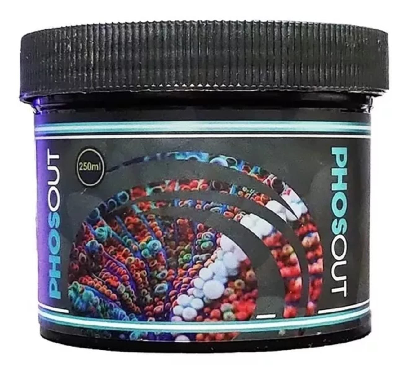 PhosOUT Ocean Tech é um polímero seletivo especialmente desenvolvido para a remoção de fosfato e silicatos em aquários de água doce, marinho e lago. Produzido a base de hidróxido de ferro, absorve até 4 vezes mais fosfato do que o tradicional GFO (óxido de ferro granulado). Cada 100ml de PhosOUT remove até 3ppm de fosfato em 3000 litros de água doce ou 1500 litros em aquários de água salgada. Modo de usar: Coloque PhosOUT dentro da bolsa de nylon (inclusa na embalagem) e enxague preferencialmente com água deionizada, coloque dentro de um filtro (interno, externo ou canister). Para melhores resultados é o recomendável o uso em reatores fluidizados. A substituição deverá ser efetuada assim que houver a saturação, monitore o fosfato periodicamente, qualquer sinal de fosfato indica a saturação da resina.