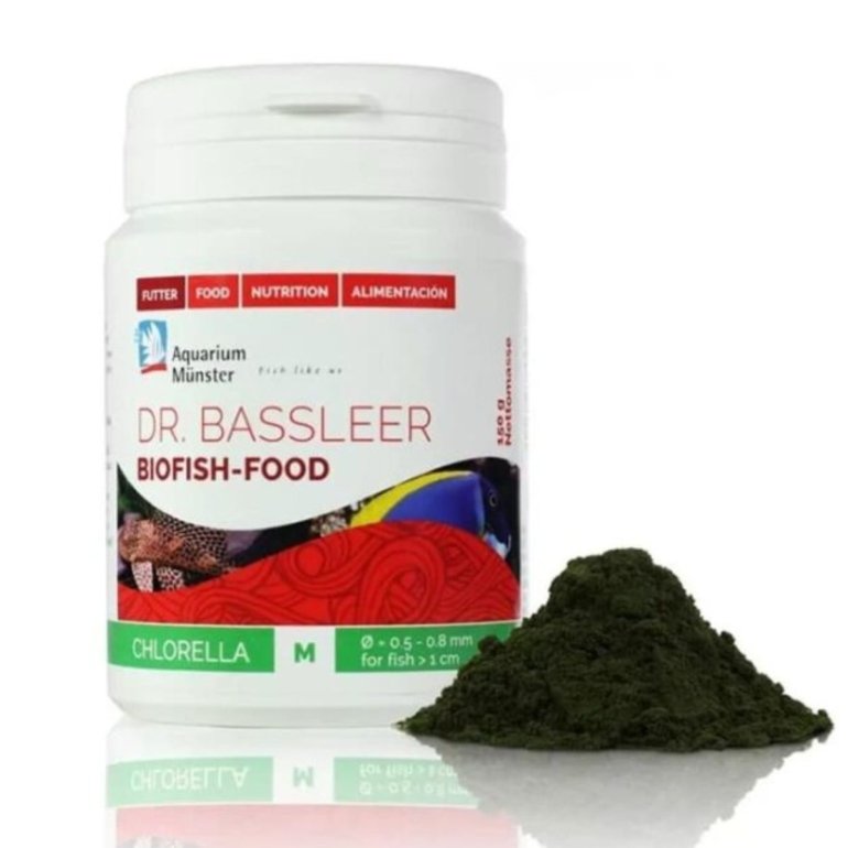 Dr. Bassleer Biofish Food CHLORELLA para peixes com necessidade vegetal na dieta.