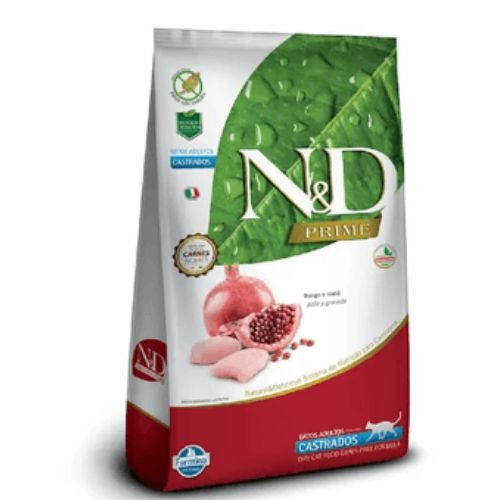 Ração N&D Prime Gatos Adultos Castrados Frango e Romã