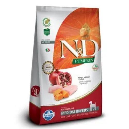 A Ração N&D Pumpkin Cães Adultos Raças Médias é um alimento Grain Free, livre de cereais, sem transgênicos e apenas conservado naturalmente, sem corantes e conservantes artificiais. Com baixa quantidade de carboidratos e gorduras de origem animal de fácil assimilação.