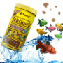 – Ichtio-vit é uma ração com múltiplos ingredientes em forma de flocos.