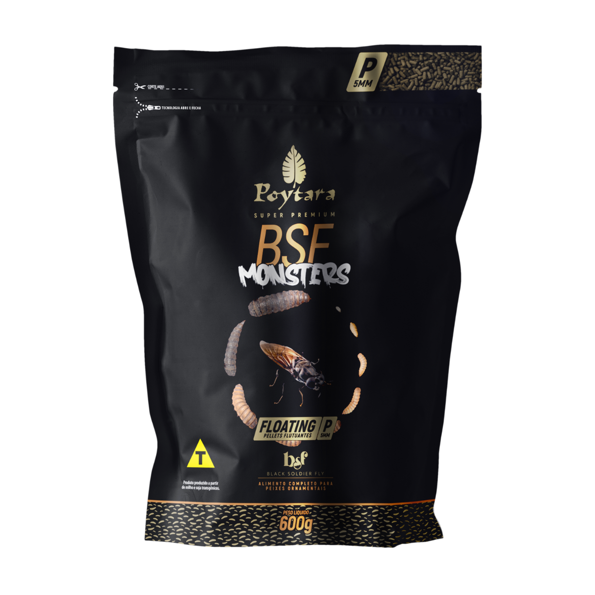 Um diferencial expressivo da BSF Monsters Floating é que em sua formulação não contém extrativismo marinho e corantes artificiais, proporcionando uma alimentação mais saudável e sustentável para seus peixes. É um alimento que pode ser utilizado diariamente em conjunto às demais rações Poytara ou em dias alternados ao longo da semana.
