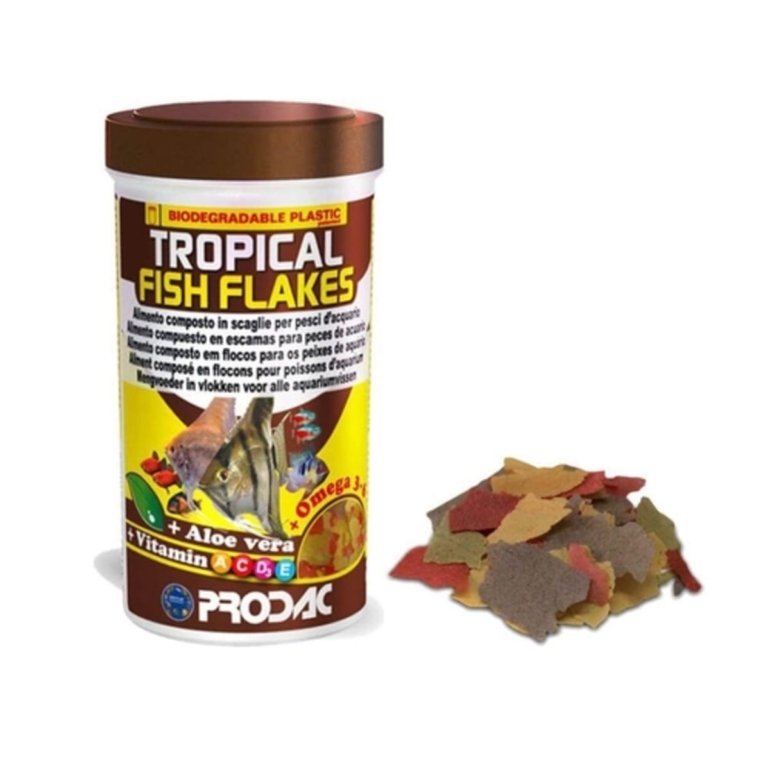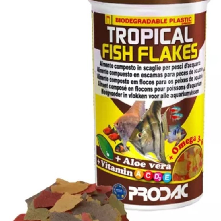 A Ração Prodac Tropical Fish Flakes é um alimento composto em flocos desenvolvido especificamente para todos os tipos de peixes ornamentais tropicais. Sua fórmula exclusiva combina uma variedade de ingredientes de alta qualidade, essenciais para uma dieta equilibrada e nutritiva.