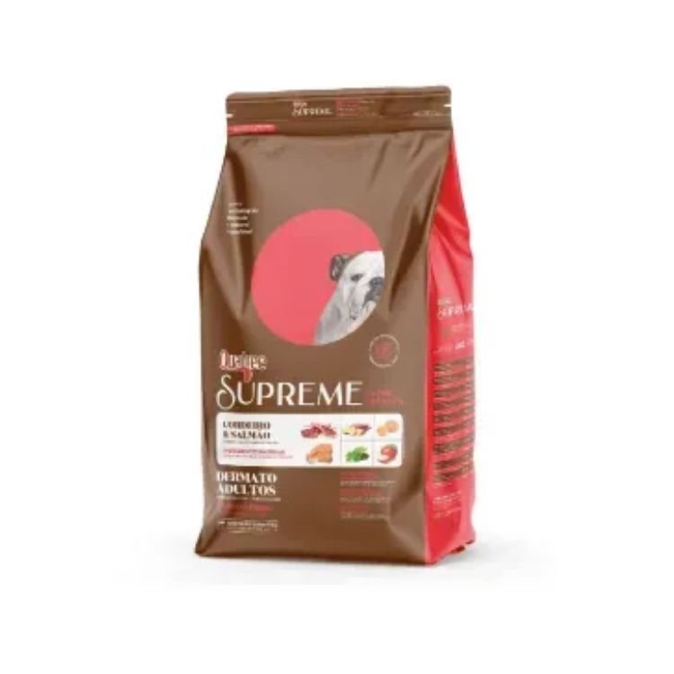 A Ração Quatree Supreme Dermato Cães Adultos Cordeiro e Salmão é especialmente indicada para cães adultos de todas as raças que necessitam de cuidados específicos para a pele e o sistema digestivo. Este alimento Super Premium, formulado com ingredientes naturais, promove vitalidade, bem-estar e uma nutrição completa, sem conter ingredientes transgênicos ou antioxidantes artificiais (BHT e BHA).
