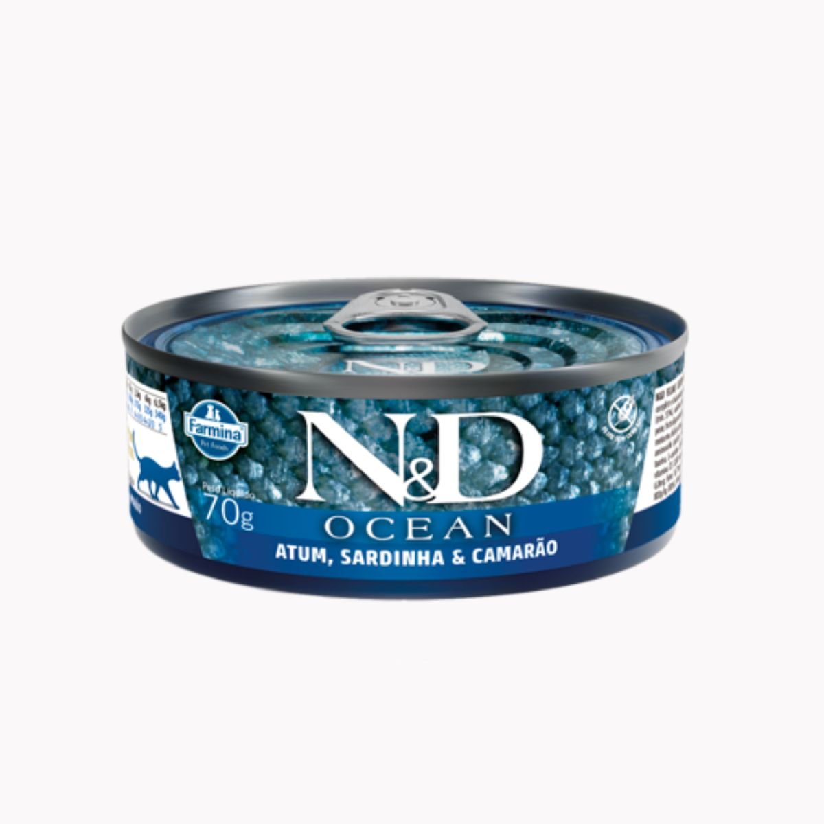 RAÇÃO ÚMIDA ND OCEAN ATUM SARDINHA E CAMARÃO P/ GATOS AD 70G