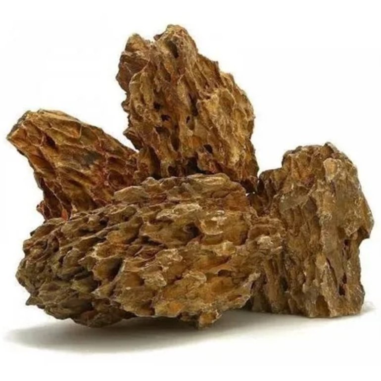 As rochas Dragon Stone são conhecidas por sua aparência distinta, com cores marrons a levemente vermelhas, e textura que lembra as escamas de um dragão. Esta característica única adiciona uma dimensão fascinante ao seu aquário, criando um cenário que imita formações rochosas naturais. Além de sua estética impressionante, as rochas Dragon Stone são seguras para os peixes e para o ambiente aquático. Elas não alteram os parâmetros da água, como PH, proporcionando um ambiente seguro e confortável para os habitantes do aquário.