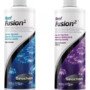 Reef Fusion 1 ™ e Reef Fusion 2 ™ são a base de um sistema formulado para fornecer os elementos essenciais para o aquário de corais. Reef Fusion 1 ™ fornece cálcio, enquanto Reef Fusion 2 ™ fornece alcalinidade. Quando usados em conjunto, o sistema Reef Fusion ™ vai manter os níveis de cálcio e alcalinidade. Reef Fusion 1 ™ fornece não só 100,000 mg / L de cálcio iónico, mas também inclui biologicamente níveis adequados de magnésio, estrôncio, boro, ferro, manganês e molibdénio. Reef Fusion 2 ™ contém uma mistura de carbonatos e bicarbonatos a uma alcalinidade de 4400 meq / L. Ele é projetado para restaurar e manter a alcalinidade no aquário de corais e fornecer o carbonato essencial necessário para o crescimento de espécies calcárias. Quando usados corretamente, Reef Fusion 1 ™ e Reef Fusion 2 ™ irão manter os níveis críticos de cálcio e alcalinidade necessários para o crescimento saudável do coral, proporcionando biologicamente níveis adequados de outros elementos e minerais. Por que é diferente Reef Fusion é diferente dos outros suplementos de cálcio e carbonato porque estes dois produtos, 1 e 2 são especificamente concebidos para serem utilizados em conjunto de uma forma simples, na razão de 1:1. Existem produtos similares no mercado, mas o sistema Reef Fusion é o que apresenta estes dois sistemas mais concentrados para a manutenção de cálcio e carbonato de alcalinidade disponível. Instruções Meça os parametros do aquário a cada 1-2 dias. Agite antes de usar. Adicionar 1 mL de Reef Fusion 1 ™ a cada 25 L de água (para fins de referência, a tampa tem 5 mL). Adicione a uma área grande do aquário. Aguardar alguns minutos, depois adicionar Reef Fusion 2™ da mesma maneira, de 1 mL a cada 25 L, depois agitar bem. Prefere-se que os dois produtos sejam adicionado em locais separados no tanque. Esta dose adiciona 4 mg / L de cálcio, e 0,176 meq / L de alcalinidade. Nunca misture Reef Fusão 1 ™ com Reef Fusion 2 ™ diretamente. Não exceda a dose de 4 ml em 25 litros por dia de cada produto. Manter o nível de cálcio entre 410-430 mg / L. Manter a alcalinidade entre 4-6 mEq / L. Tamanho ou frequência de dose pode ser aumentada se o regime de dosagem é insuficiente para manter o cálcio e alcalinidade nestas gamas.