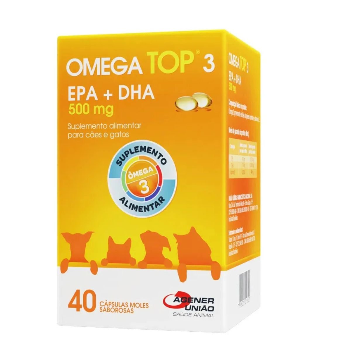 O Omegatop 3 500mg é um suplemento alimentar à base de ácidos graxos essenciais Ômega 3 (EPA e DHA), desenvolvido especialmente para melhorar a saúde da pele, pelagem, articulações, coração e sistema imunológico de cães e gatos.